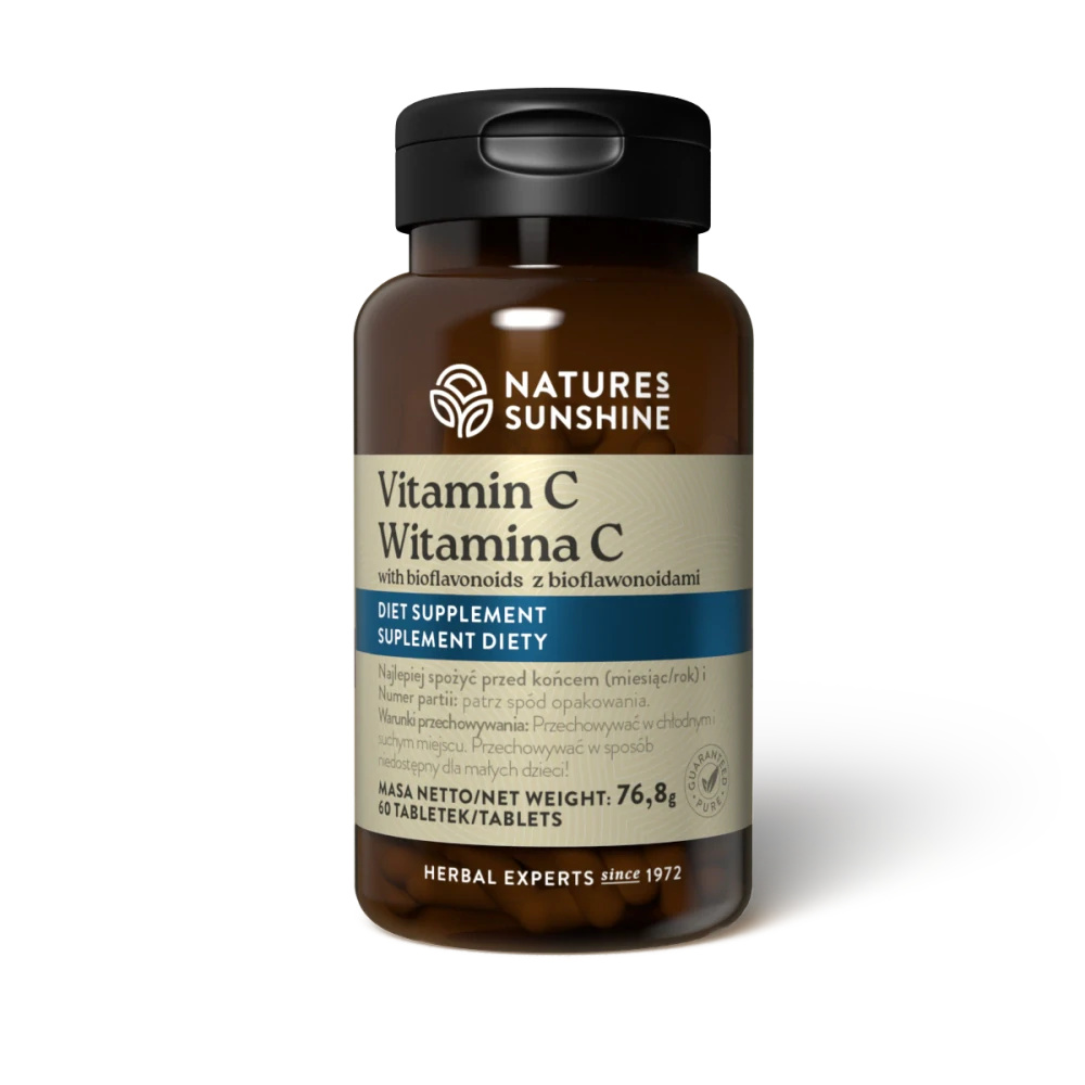 Vitamín C od Nature’s Sunshine je výrobek, který má díky spojení takových složek, jako vitamín C, rutin a hesperidin značný vliv na funkci organismu. Vitamín C, který se ve výrobku vyskytuje ve velmi vysokém množství 1000 mg (1250 % doporučené denní dávky) přispívá k takovým procesům v lidském organismu, jako: správná funkce imunitního systému během a po intenzivním fyzickém cvičení, tvorba kolagenu za účelem zajištění správné funkce kostí, chrupavek, dásní a kůže; správný energetický metabolismus a také správná funkce nervového systému. Vitamín C přispívá také ke snižování pocitu únavy a špatné nálady a posiluje ochranu buněk proti oxidačnímu stresu.