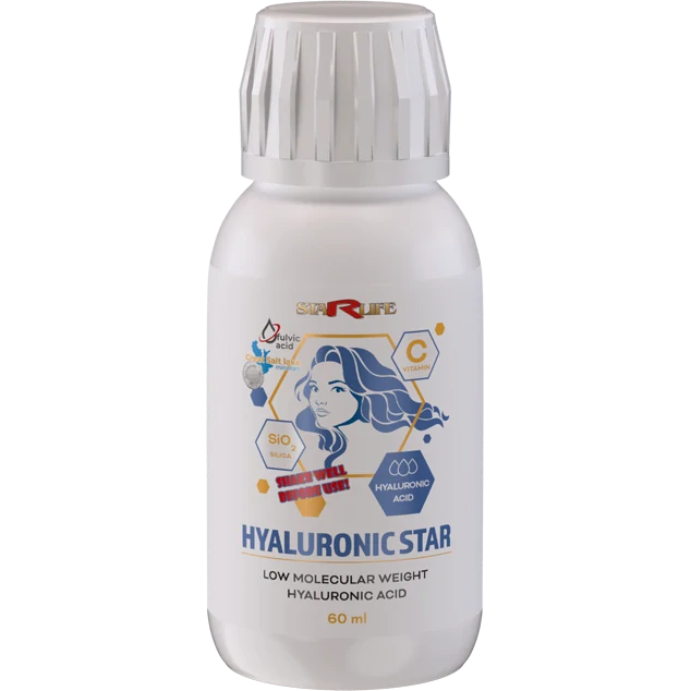 Produkt HYALURONIC STAR se pyšní obsahem kyseliny hyaluronové, vitaminu C, křemíku a směsí 74 základních minerálů a stopových prvků ve formě ionizovaného mikrokoloidního roztoku se vstřebatelností jednotlivých složek až na 92 % z požitého množství (zdrojem je minerální voda s kyselinou fulvovou z Great Salt Lake v Utahu).